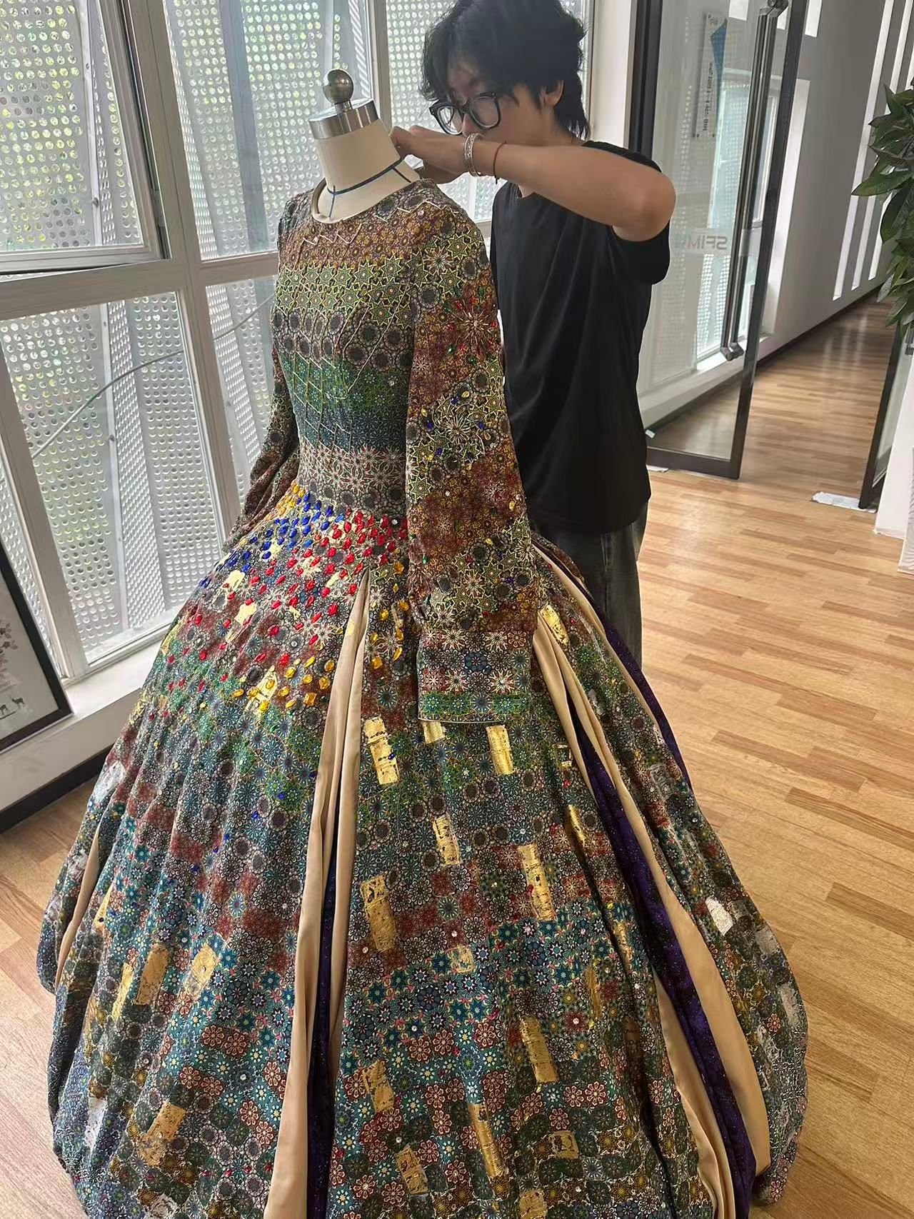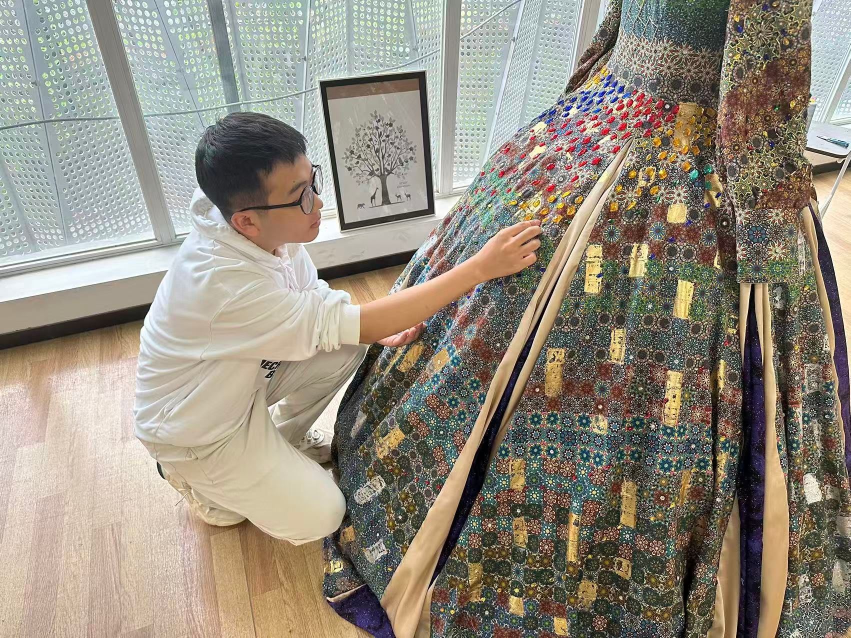 实验室里,缝纫机的哒哒声与同学们的讨论声交织在一起,充满了浓厚的创作氛围。遇到技术难题时,大家便共同探讨,或虚心向留校的专业老师请教,在实践中学习,在学习中进步。现代服装产业学院提供的先进设备和开放环境,为同学们的创作提供了有力保障,使他们能够更专注于设计本身,将课堂所学理论知识与实际操作紧密结合。