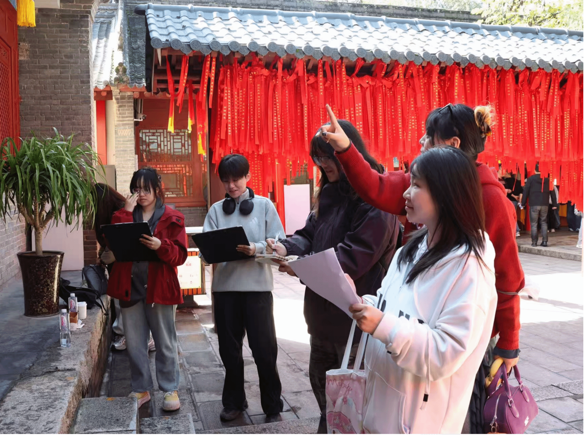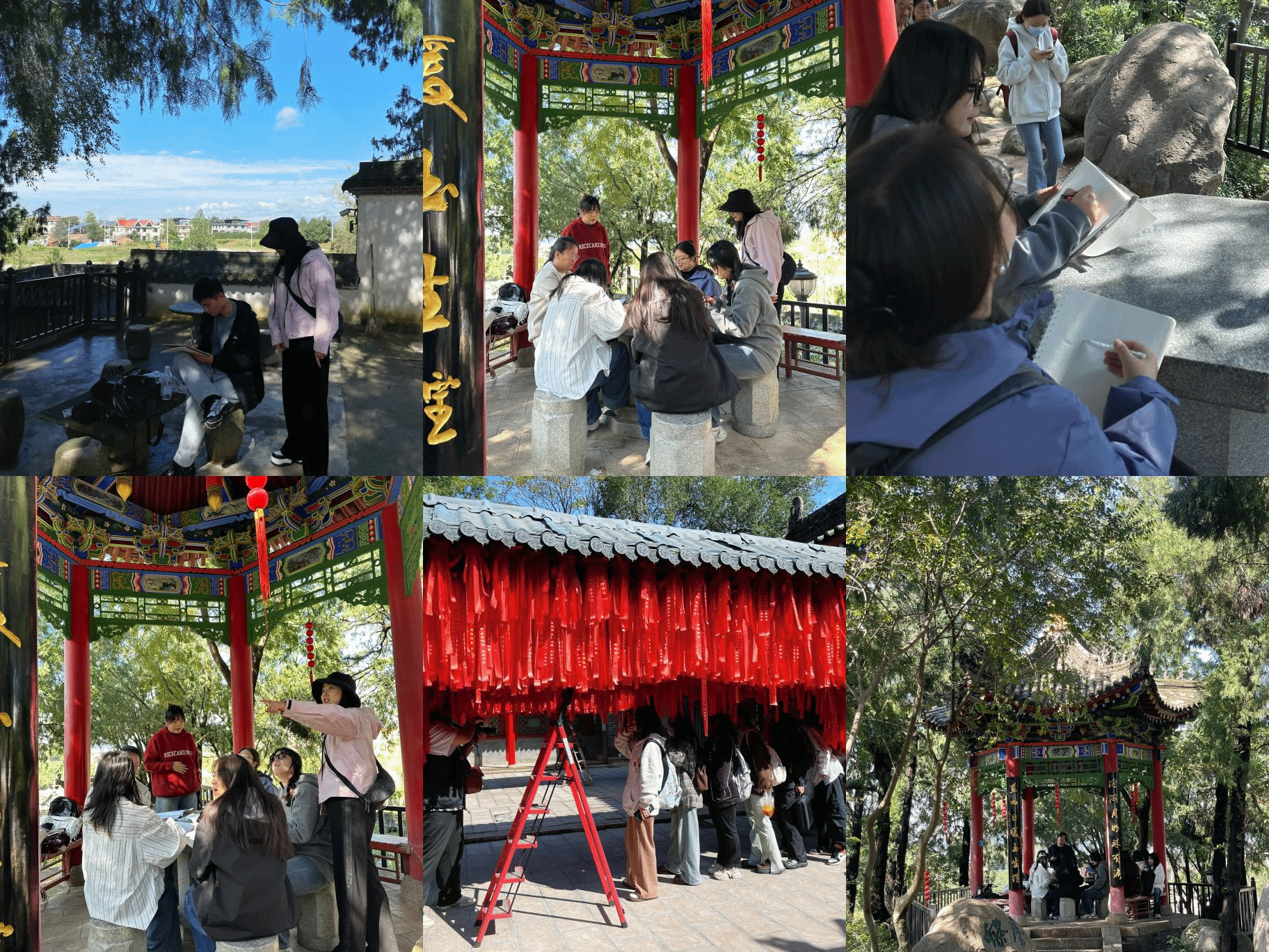 首日的采风虽短暂,却让学生收获满满。一张张照片、一页页速写,不仅是水陆庵古建艺术的直观记录,更是传统美学与现代服装设计碰撞的最初火花。据悉,在本次采风中学生对丝绸之路上的艺术融合与文化传承有了直观且深入的理解,在聆听老师的讲解与指导后,学生表示将把本次采风获得的灵感与感悟融入后续的毕业设计创作中,力求在作品中巧妙转化传统纹样与色彩精髓,探索传统文化与现代设计的创新结合,为毕业设计注入独特的文化底蕴与时代气息。