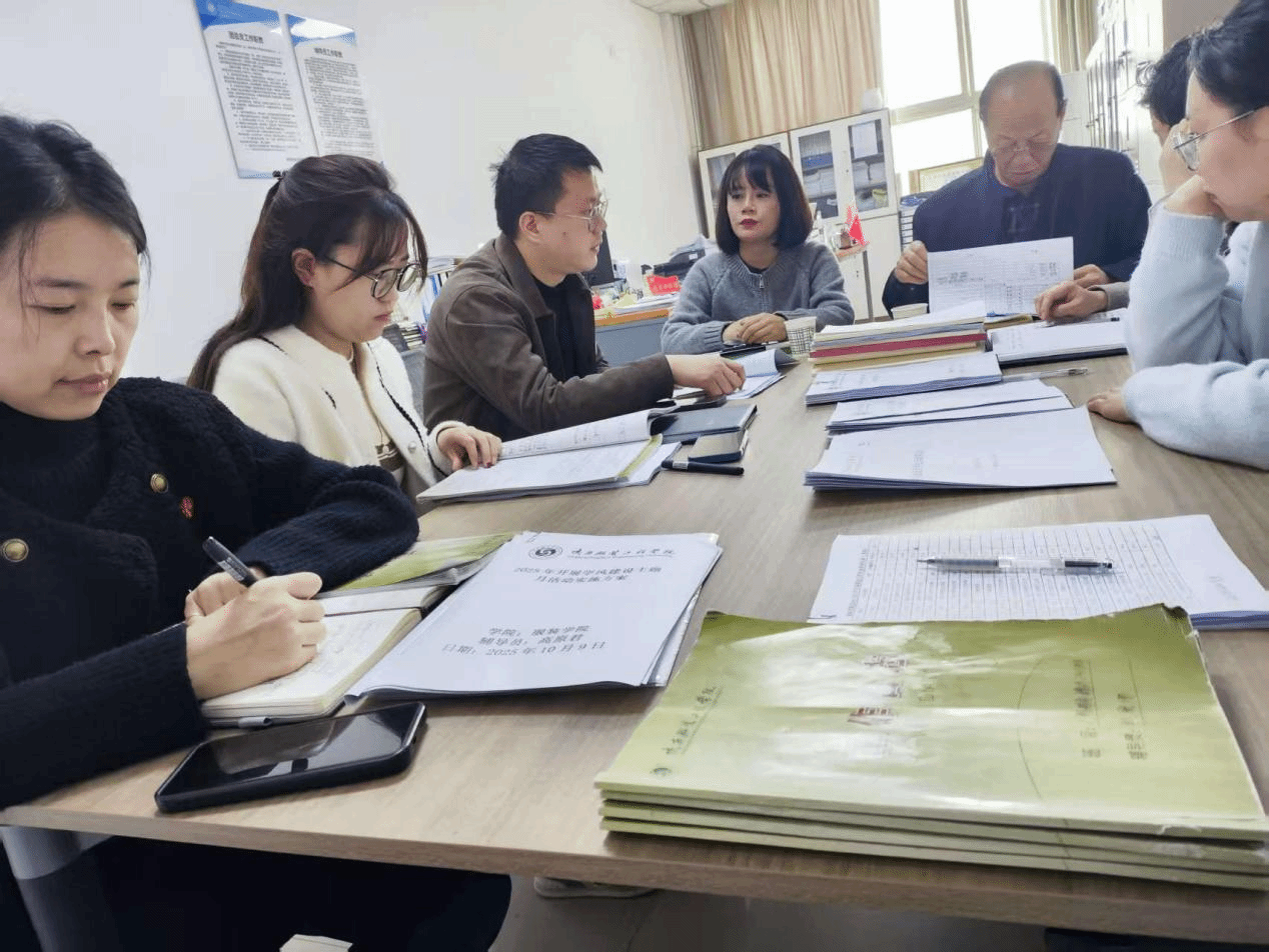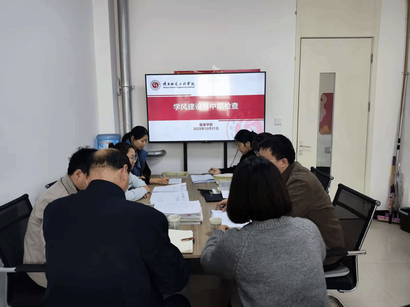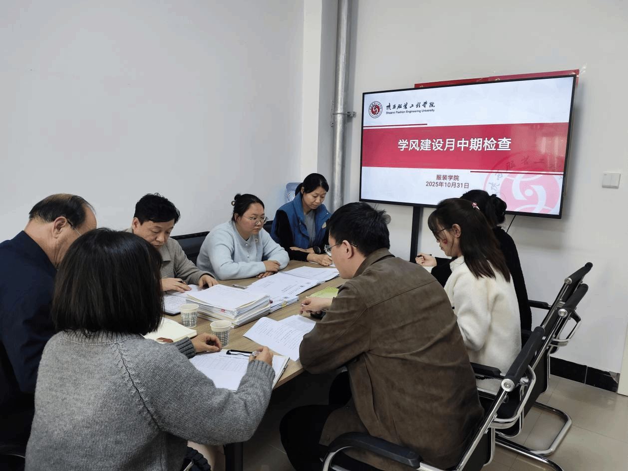 为全面掌握2025年秋季学期“涵养学习志趣,赋能职业未来”学风建设月实施进度,精准评估活动实效,学工部、学生管理科科长张维峰老师,学工部王晓英老师一行于2025年10月31日深入学院开展学风建设月中期检查工作。检查通过实地走访、查阅资料、座谈交流等形式,对学风建设重点任务落实情况进行全面督导。由服装学院党委副书记王军宝老师总结汇报,全体辅导员逐一针对各班情况进行汇报。