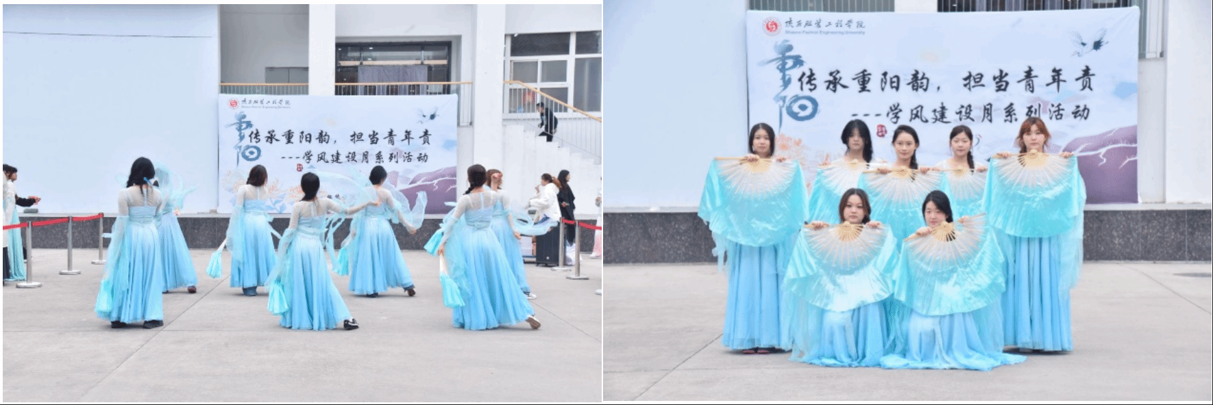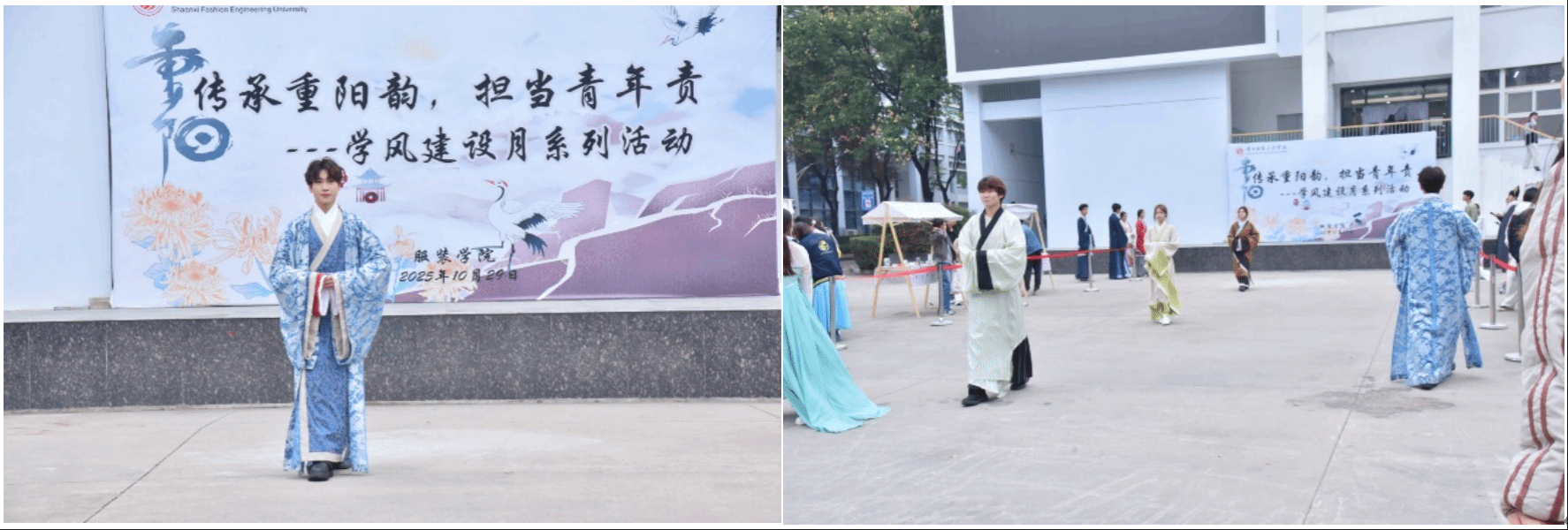为传承中华优秀传统文化,弘扬重阳敬老美德,同时以特色活动厚植勤学笃行的学风氛围,2025年10月29日,服装学院在北餐厅广场举办“传承重阳韵,担当青年责”学风建设月系列活动,将传统民俗、服饰文化、文艺表演与学风培育深度融合,吸引众多师生驻足参与,现场热闹非凡、暖意融融。