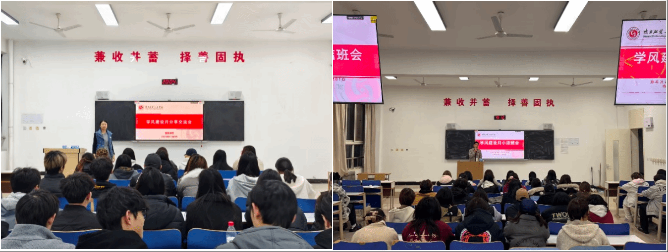 为推动学风建设月活动走深走实,营造“勤学、笃行、善思、共进”的班级学习氛围,2025年11月5日,服装学院各班级以“强学风、明方向、促成长”为主题,陆续召开学风建设月分享交流班会,全体辅导员下沉班级指导,与同学们共话学习之道、共研成长之策。