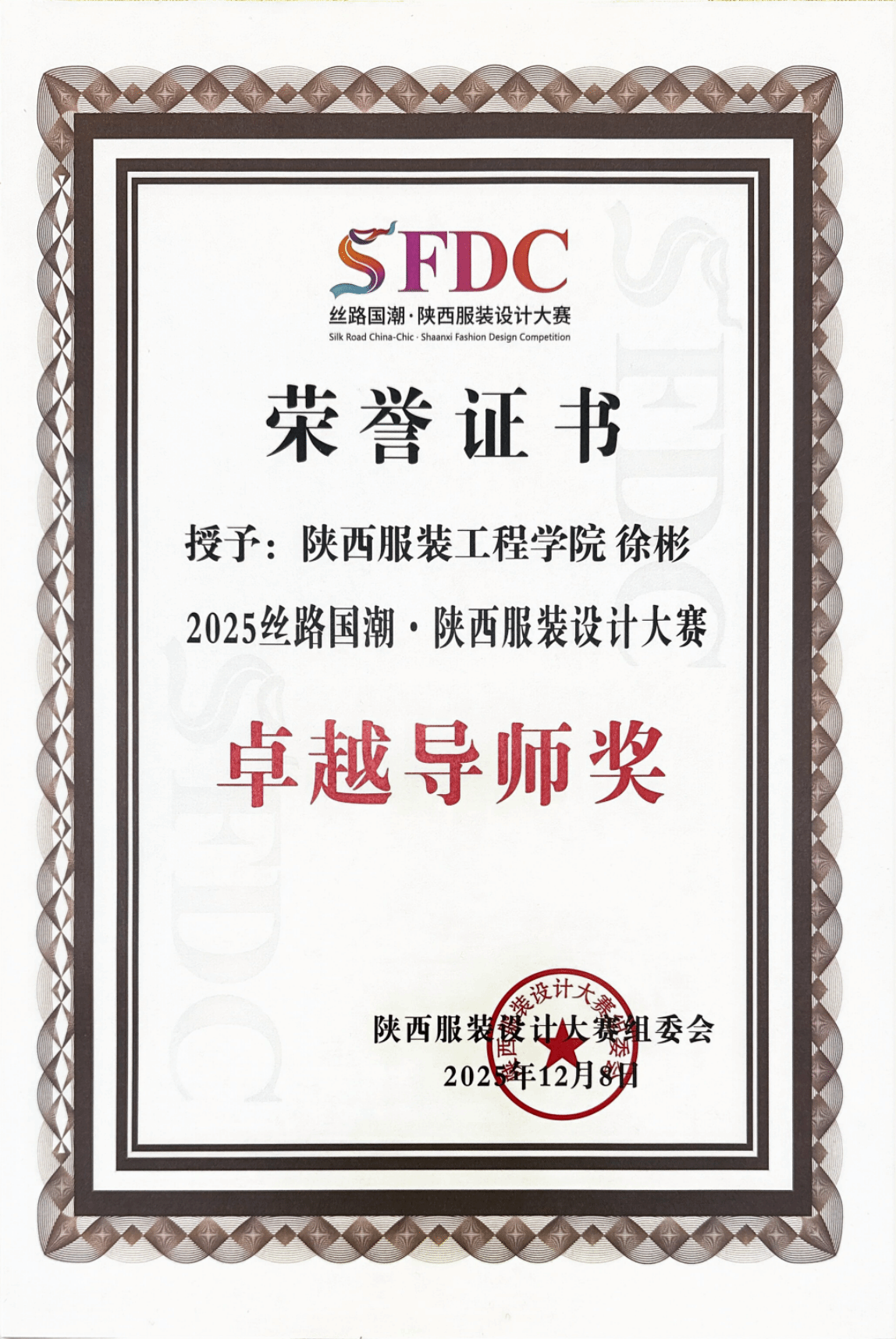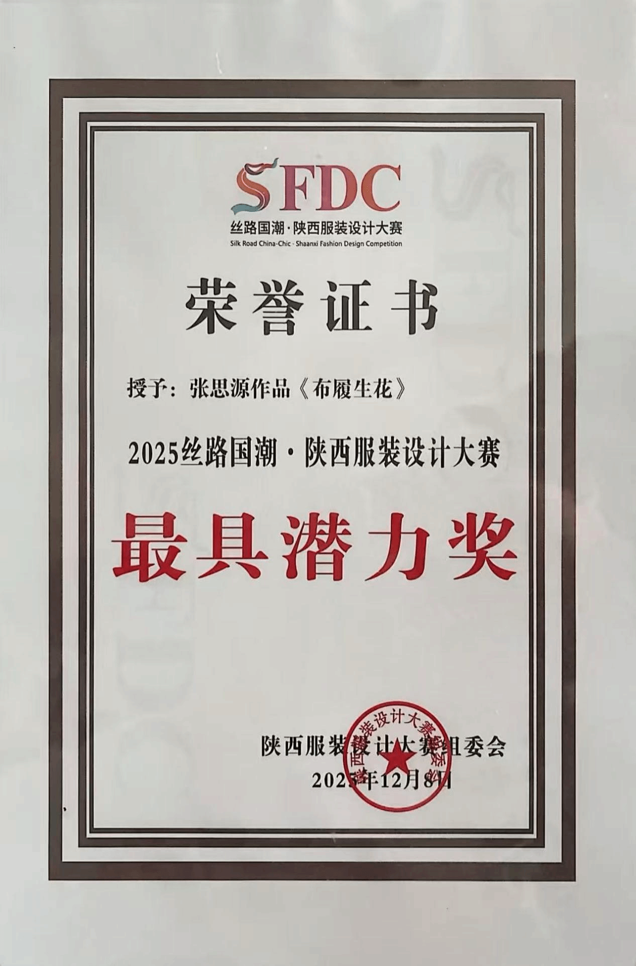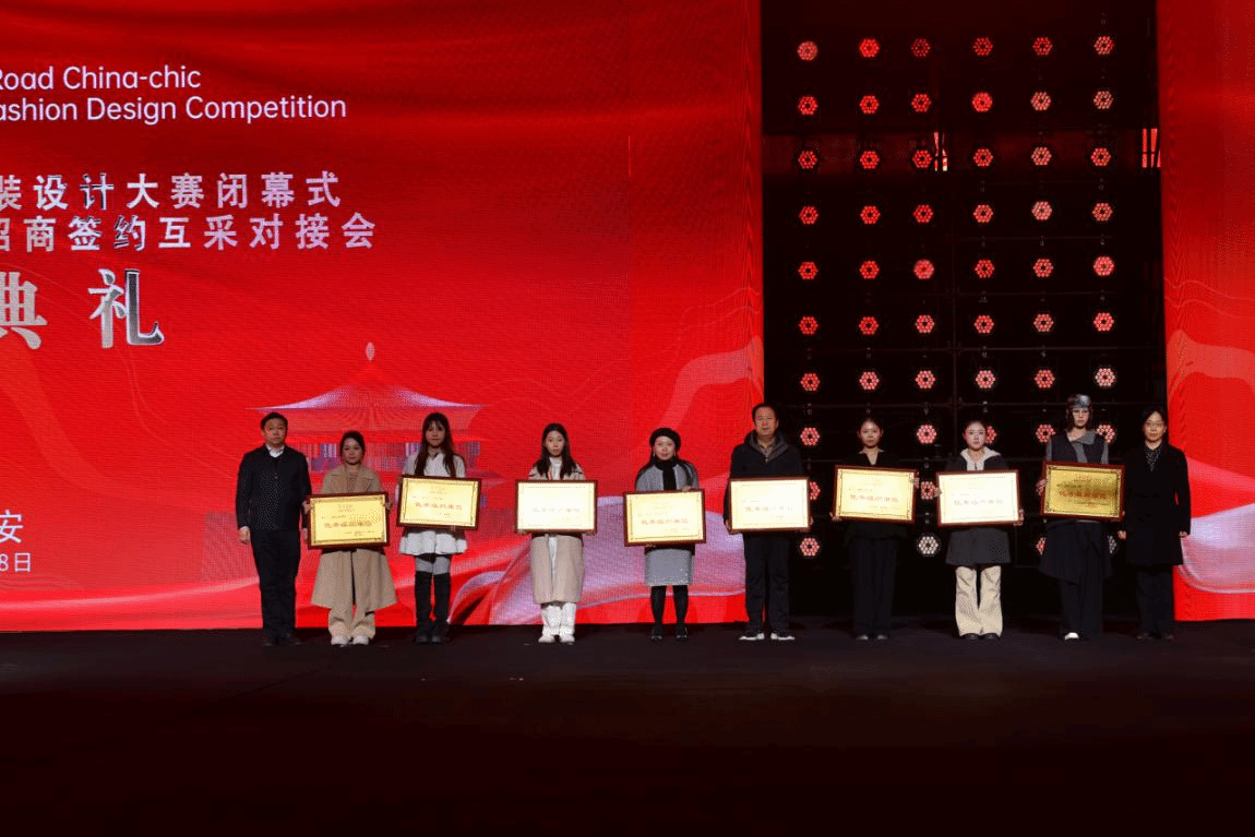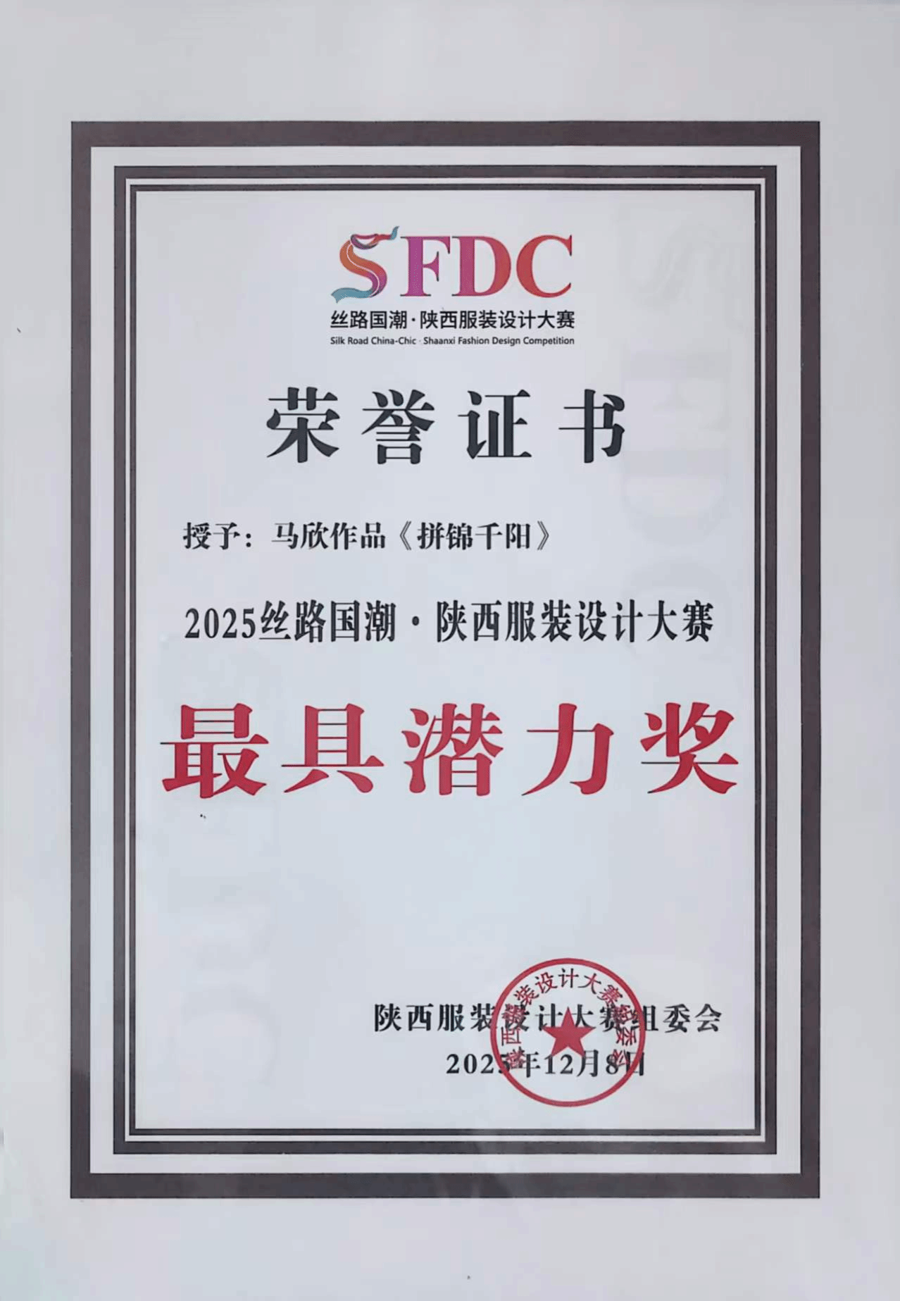 总决赛上,我院入围决赛的4组作品凭借独特的设计理念和地域文化特色脱颖而出,孙铭麒和范超的作品《秦韵丹霞·时空共生》获本次赛事唯一的金奖,马欣作品《拼锦千阳》、张思源作品《布履生花》、耿思佳作品《剪缕丝路》获最具潜力奖。服装学院院长张莉获匠心传承奖,服装学院执行院长徐彬、副院长刘红获卓越导师奖,学校获最佳组织奖。师生们在赛事上的的优秀表现充分展现了我校服装学院专业水准与课程改革成果。这不仅是对我校师生专业能力与创作水平的充分肯定,更是我校深耕服装与服饰设计专业人才培养、融合地域文化与现代设计理念、强化产教融合与实践育人成果的生动体现。