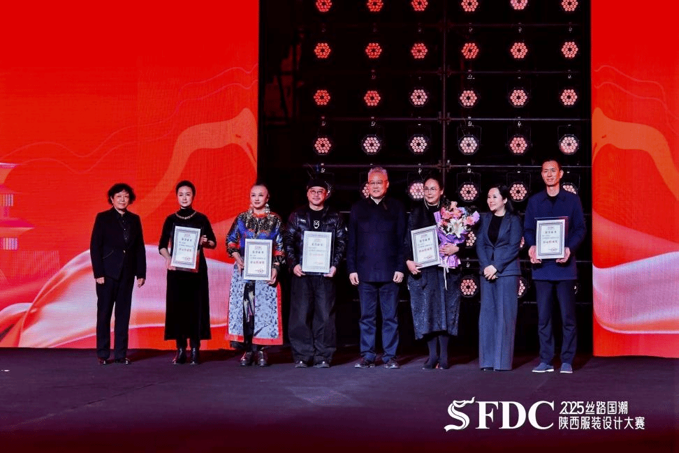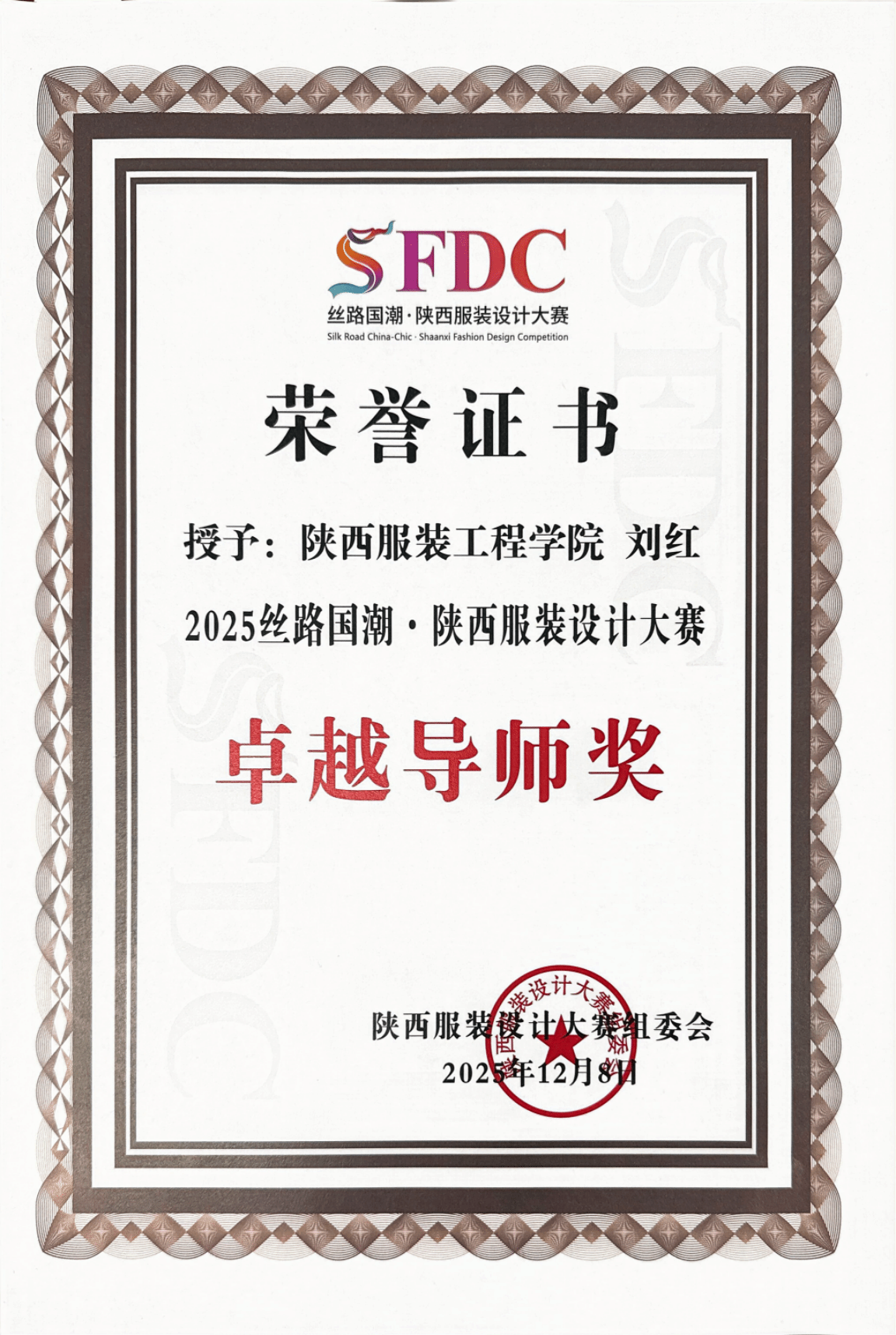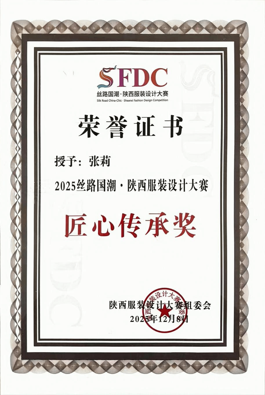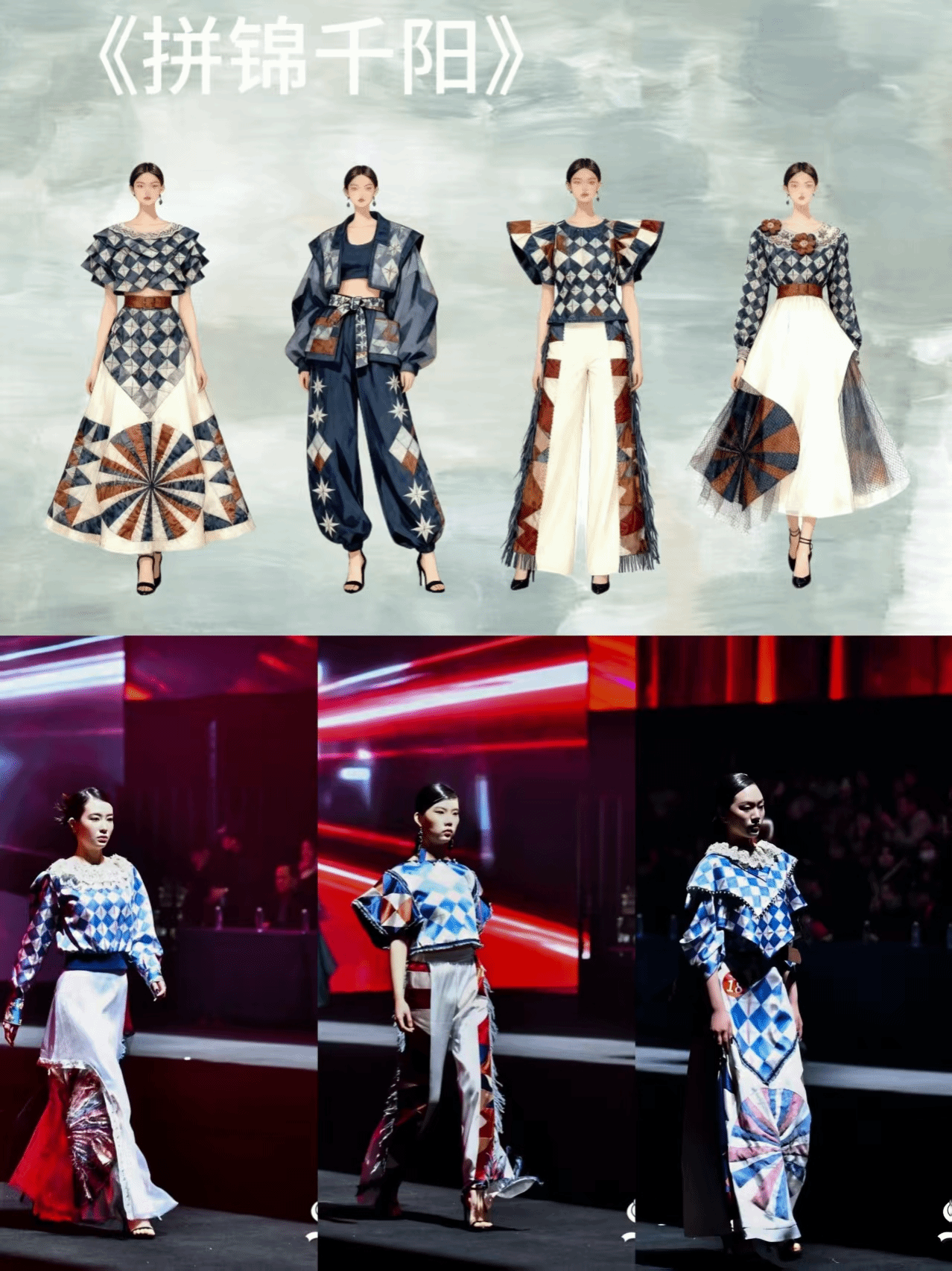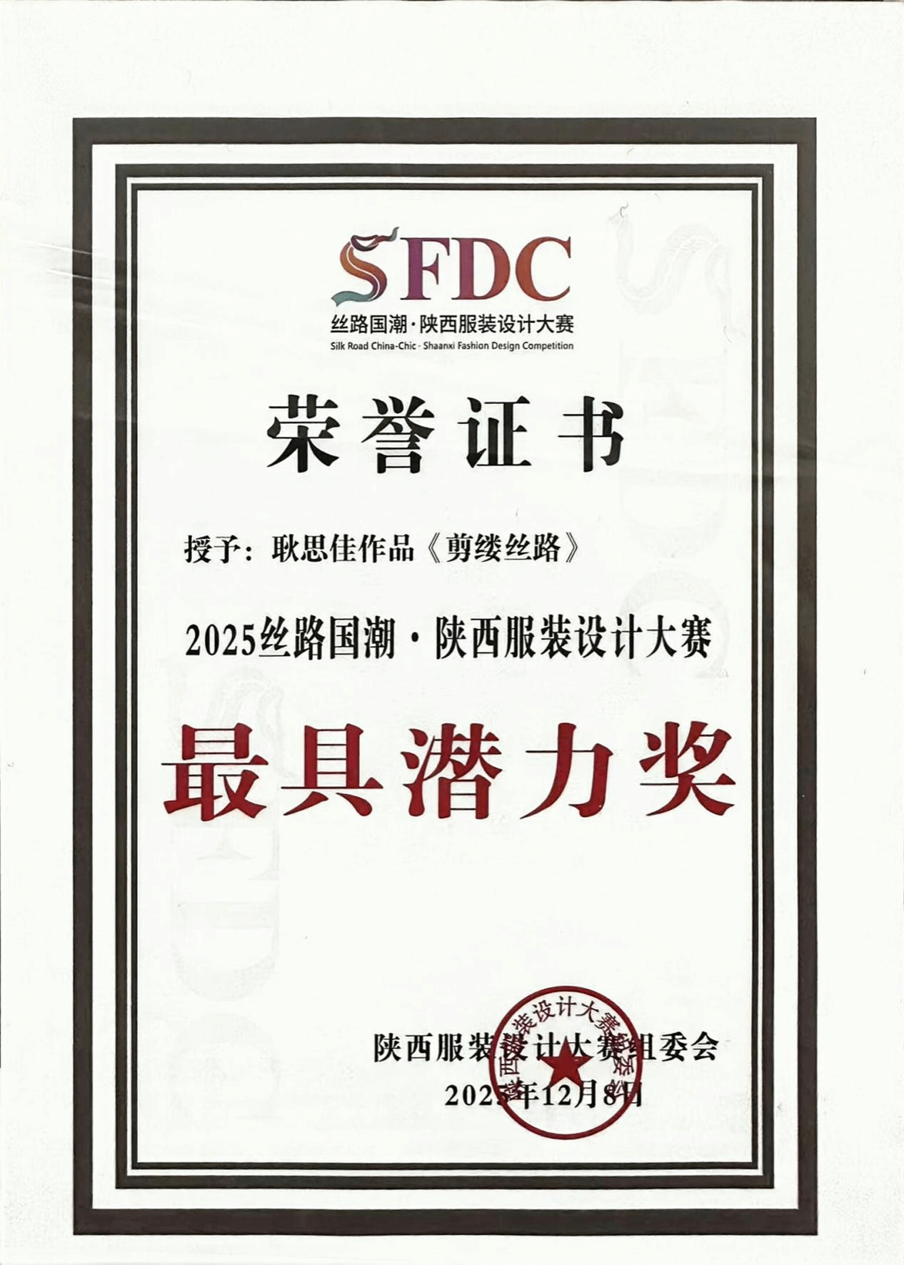 总决赛上,我院入围决赛的4组作品凭借独特的设计理念和地域文化特色脱颖而出,孙铭麒和范超的作品《秦韵丹霞·时空共生》获本次赛事唯一的金奖,马欣作品《拼锦千阳》、张思源作品《布履生花》、耿思佳作品《剪缕丝路》获最具潜力奖。服装学院院长张莉获匠心传承奖,服装学院执行院长徐彬、副院长刘红获卓越导师奖,学校获最佳组织奖。师生们在赛事上的的优秀表现充分展现了我校服装学院专业水准与课程改革成果。这不仅是对我校师生专业能力与创作水平的充分肯定,更是我校深耕服装与服饰设计专业人才培养、融合地域文化与现代设计理念、强化产教融合与实践育人成果的生动体现。
