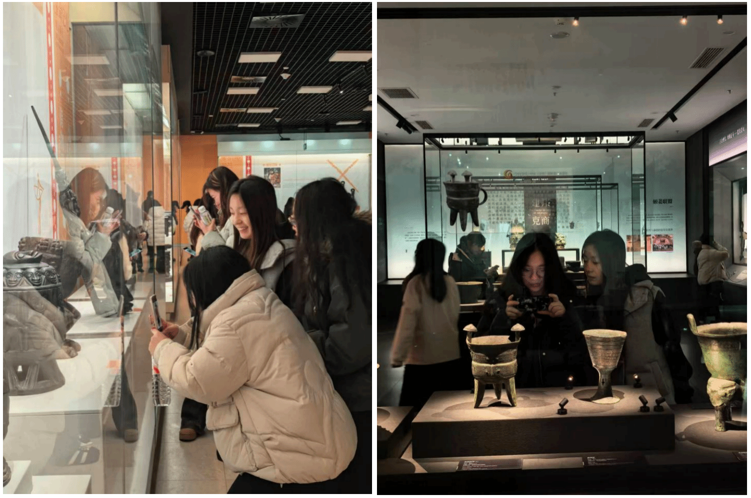 在两天的紧凑行程中,师生团队先后参观了宝鸡青铜器博物馆、宝鸡民俗博物馆、陕西历史博物馆秦汉馆及西安博物院。在青铜器博物馆,同学们细致观察青铜器上细腻的云雷纹、兽面纹与龙纹,探讨其构成规律与象征意义;在民俗博物馆,丰富多彩的民间工艺纹样为大家打开了民艺美学视野;而在秦汉馆与西安博物院,从古朴浑厚的秦汉文物到盛唐气象的金银器饰,跨越千年的纹样演变脉络清晰呈现,为首饰设计的纹样转化提供了丰厚的视觉素材与文脉支撑。