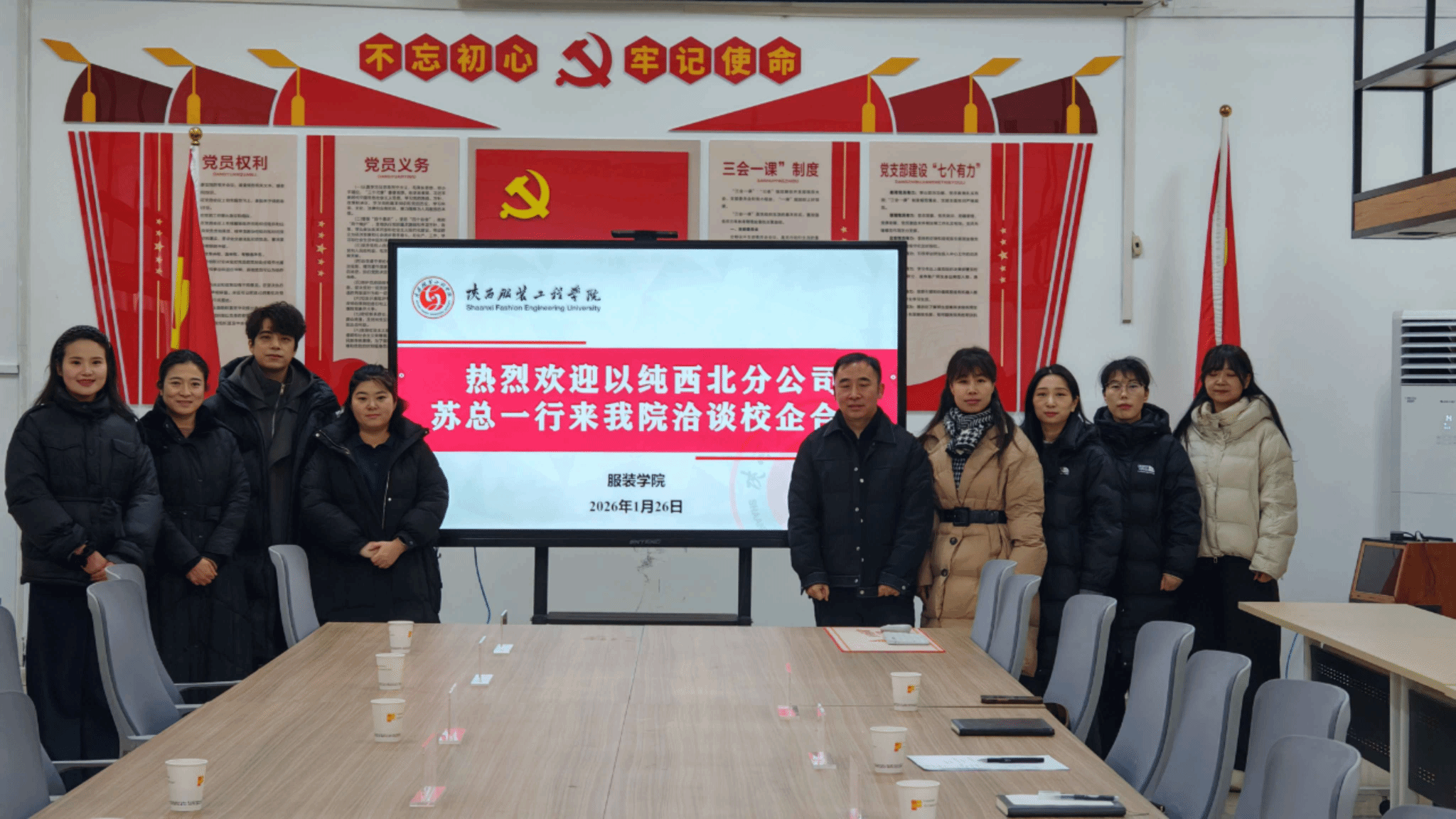 以纯西北分公司新零售负责人苏海庆、汪旭、李娜,西北区运营负责人袁城、张仙歌及小寨店经理蒲娜一行到访。服装学院教学副院长骞海青、实验室主任兼办公室主任邵娟、服装设计系主任何沛代表学院热情接待并参与洽谈。