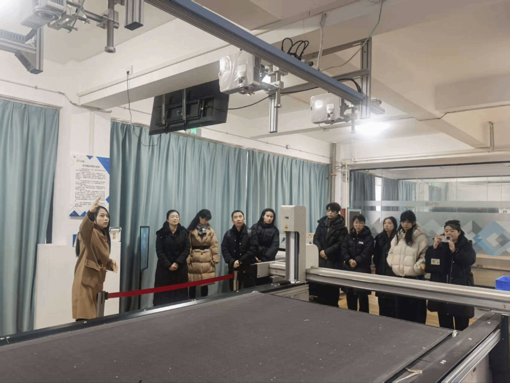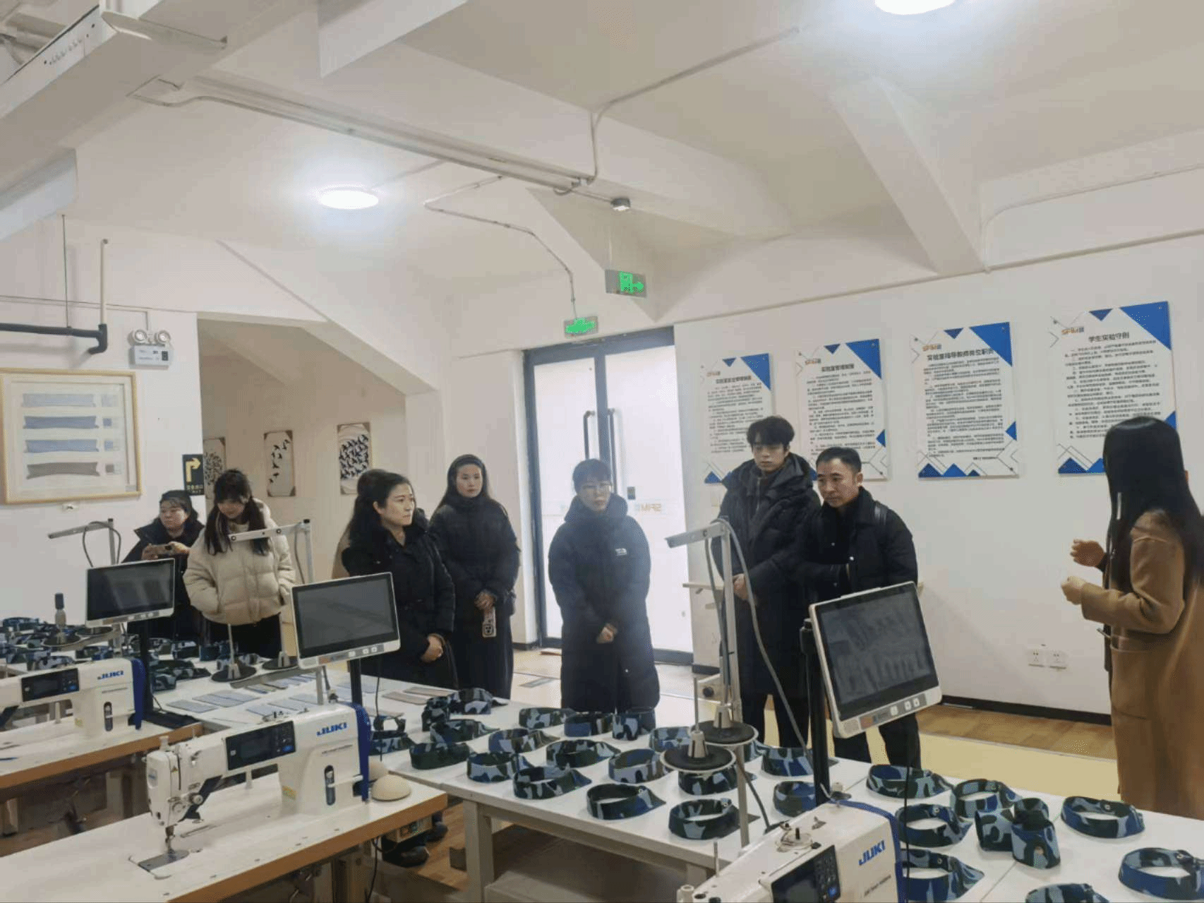 会谈前,在骞院长、邵娟及何沛两位主任的陪同下,企业代表们首先参观了现代产业学院的实践教学环境,随后走访了服装学院的数码印花、手工艺术、服饰创新等多个专业实验室,对学院先进的设施条件与实践教学体系给予了高度评价。