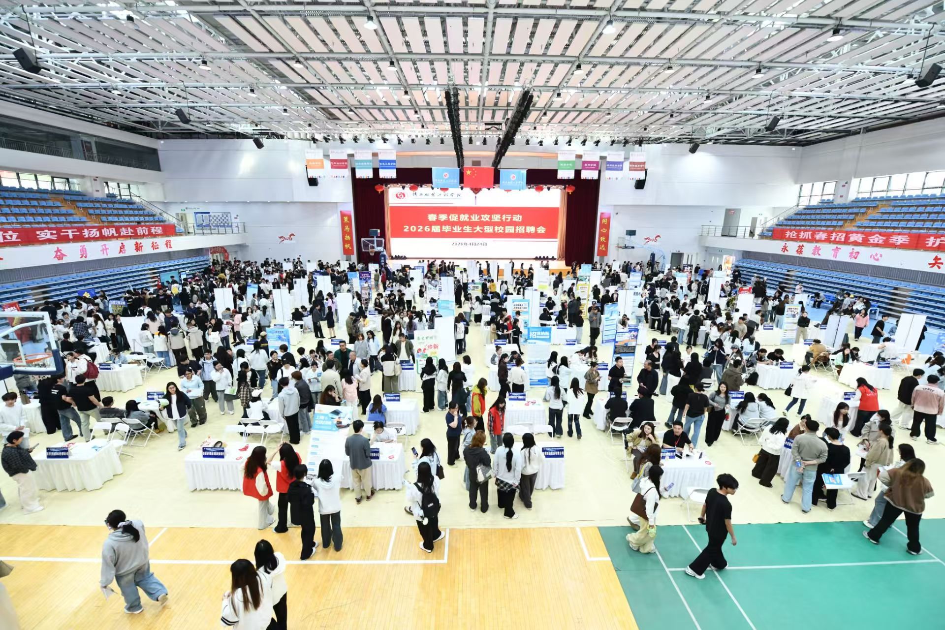 为深入贯彻落实国家关于高校毕业生就业工作的决策部署,扎实推进教育部“春季促就业攻坚行动”落地见效,4月24日,我校2026届毕业生春季大型招聘会在学校体育馆顺利举办。服装学院高度重视、积极组织,全力助力毕业生抢抓就业机遇、实现高质量充分就业。