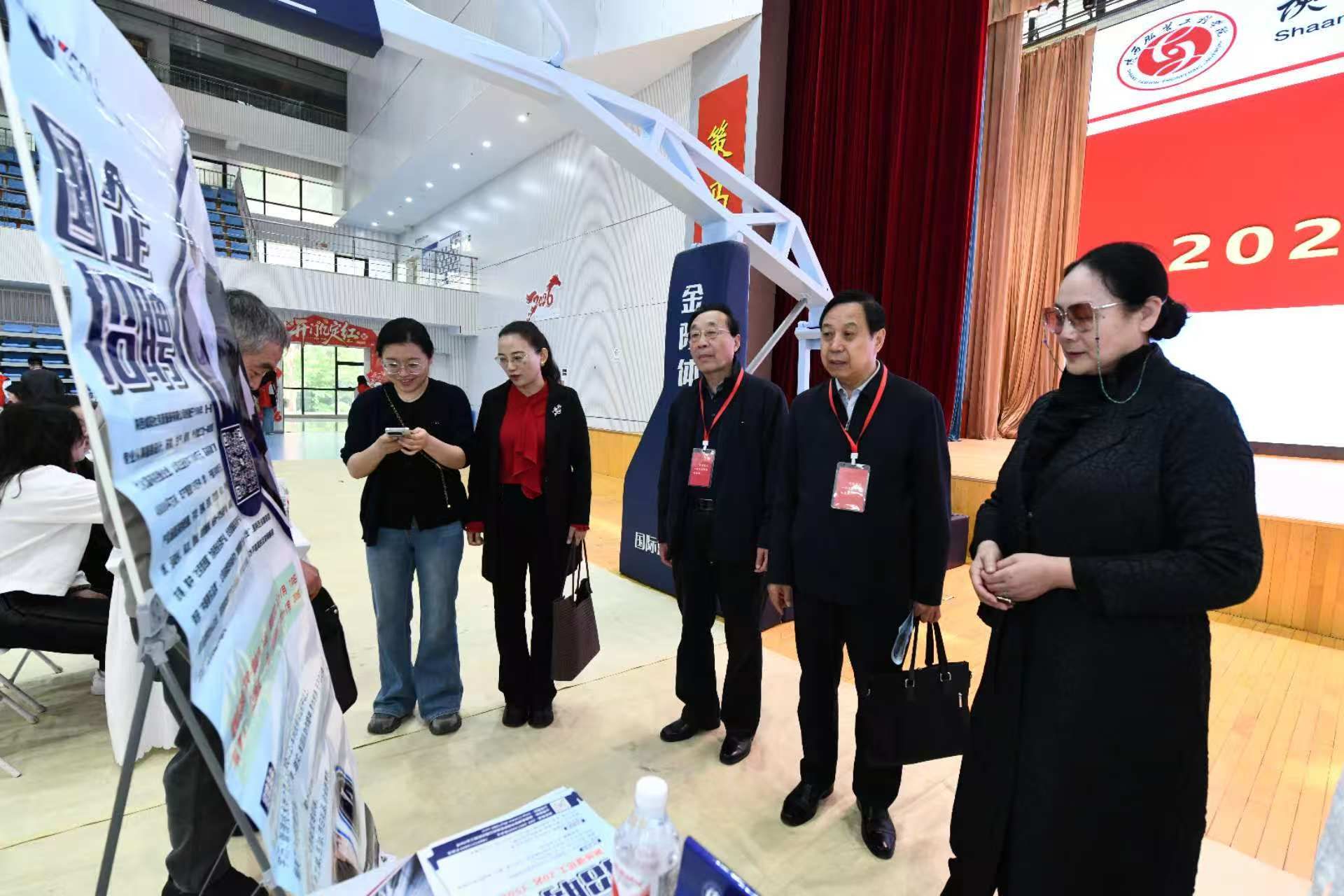 特别值得一提的是,陕西纺织服装行业协会会长严家民、副会长李树生、秘书长刘意等领导亲临招聘会现场指导工作。协会领导一行深入服装学院招聘专区及相关企业展位,与用人单位负责人、学院师生亲切交流,详细了解行业人才需求标准、企业招聘计划及毕业生求职情况,对学校深化产教融合、培养高素质应用型服装人才的举措给予充分肯定,并就进一步加强校企协同、拓宽就业渠道、优化人才培养模式等方面提出宝贵指导意见,为学院就业工作与行业发展精准对接指明方向。